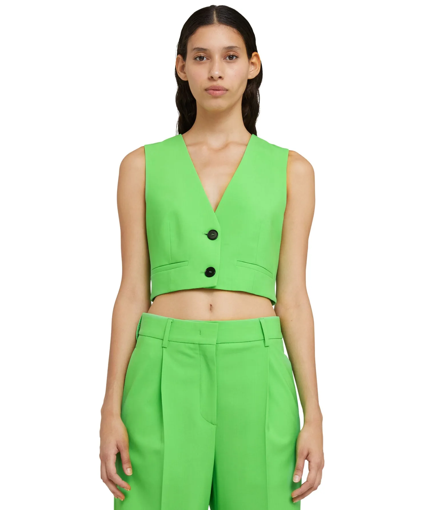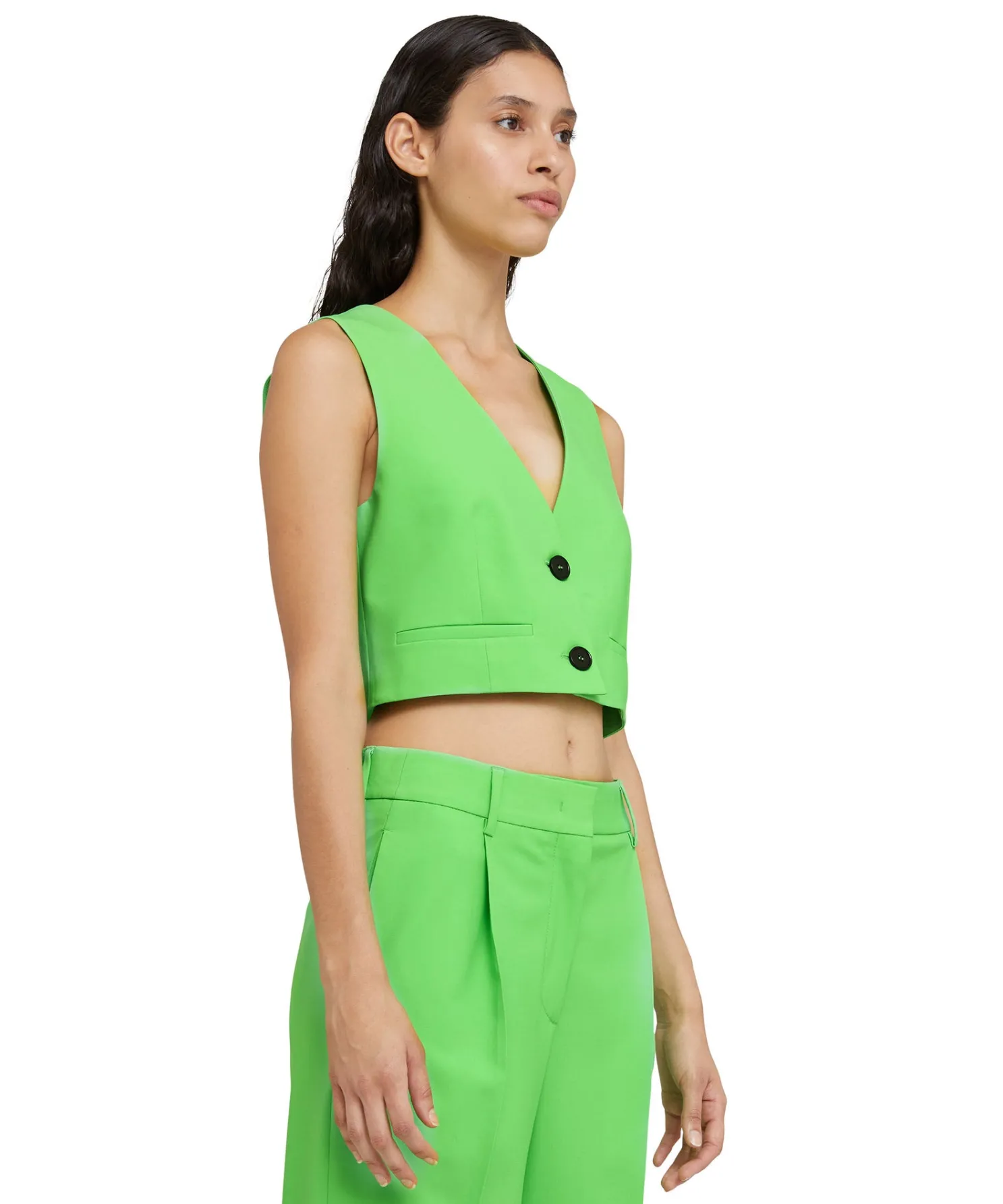 Vest Crop In Fresco Lana Tinta Unita. Apertura Frontale Con Bottoni In Contrasto E Scollo A V. Tasche A Scomparsa Fronta…