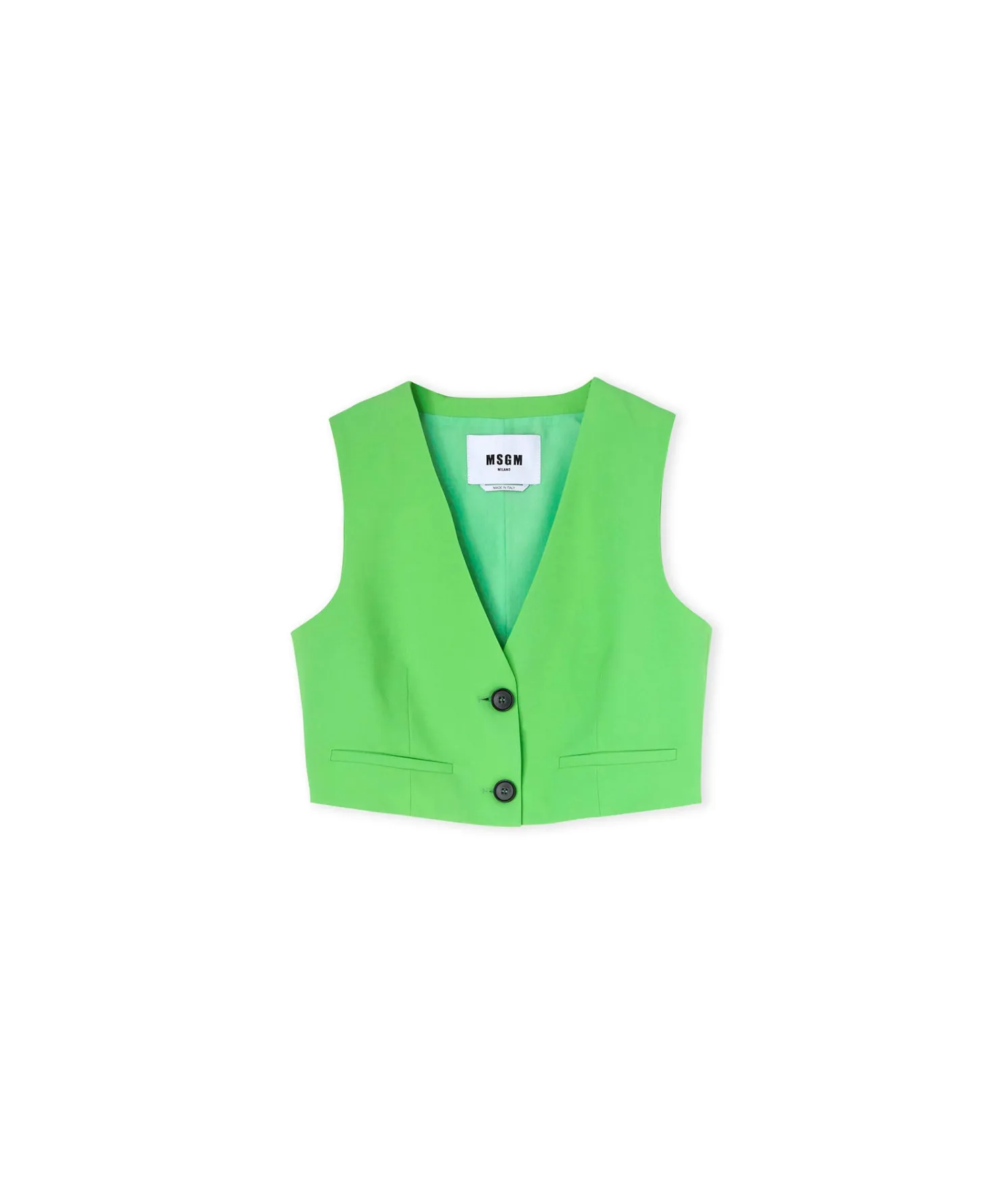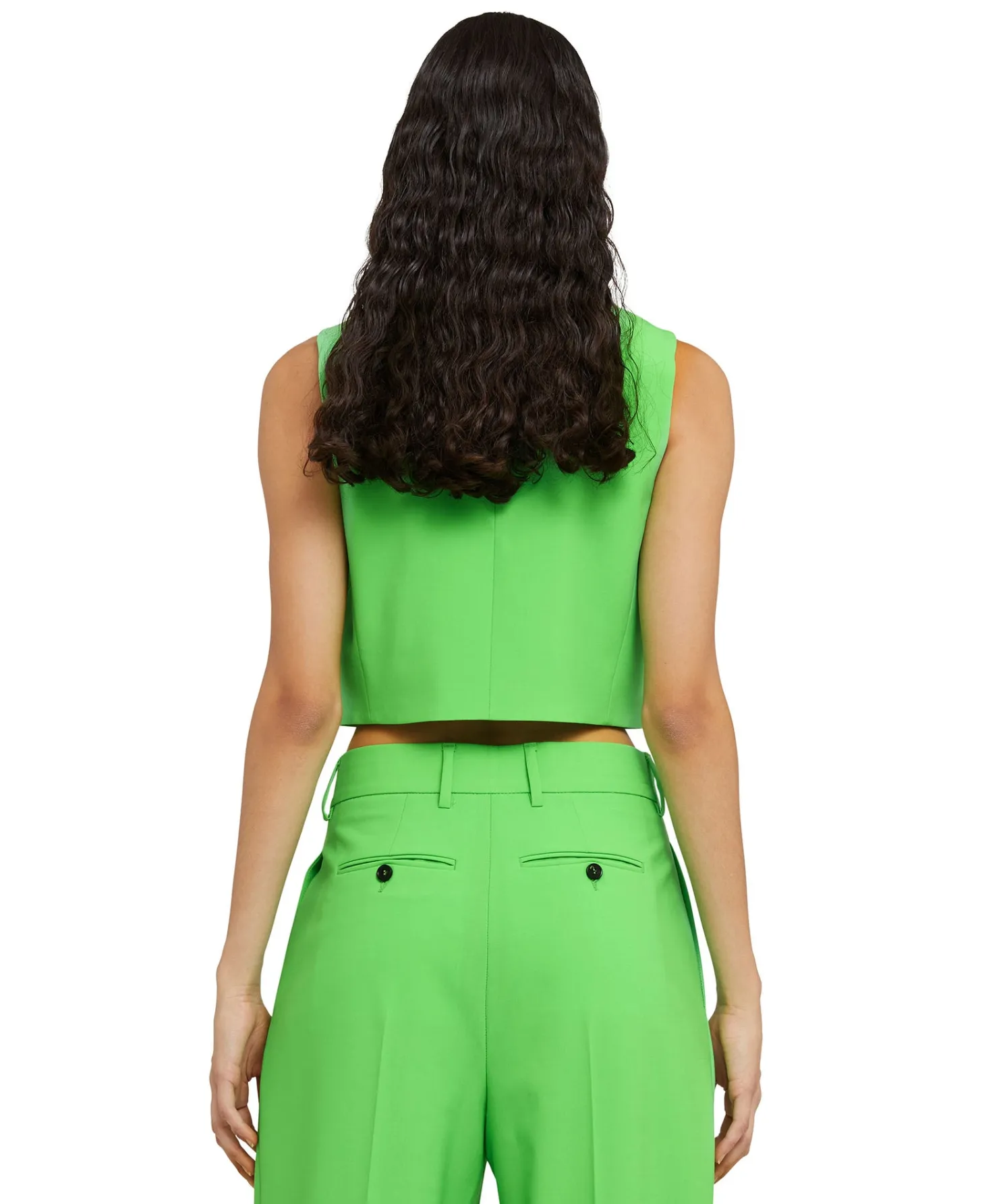 MSGM Vest Crop In Fresco Lana Tinta Unita Green Cheap