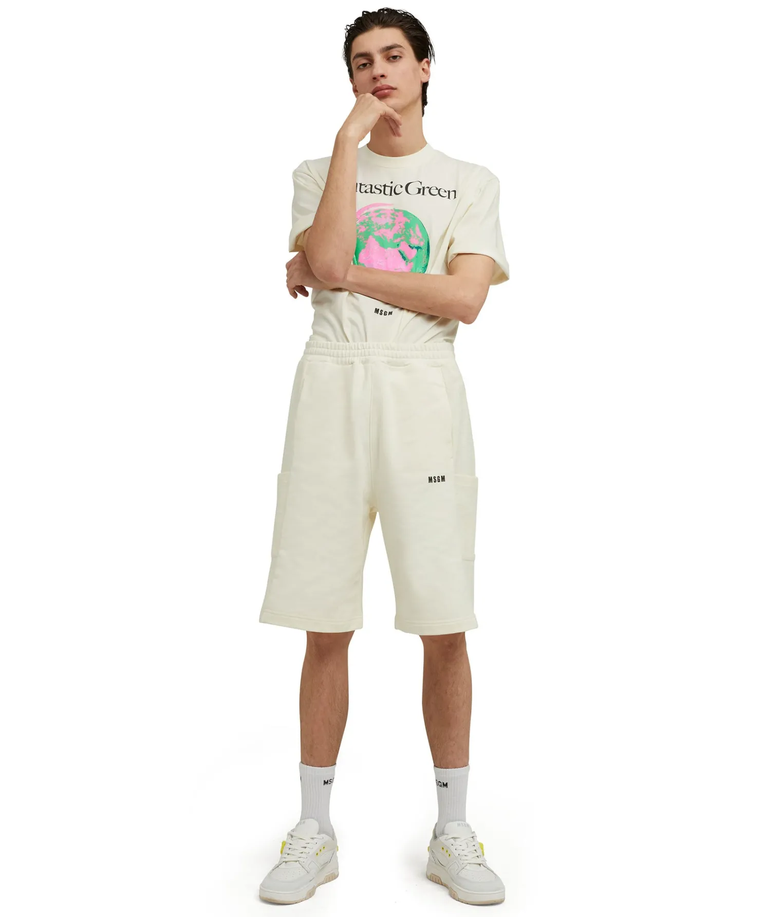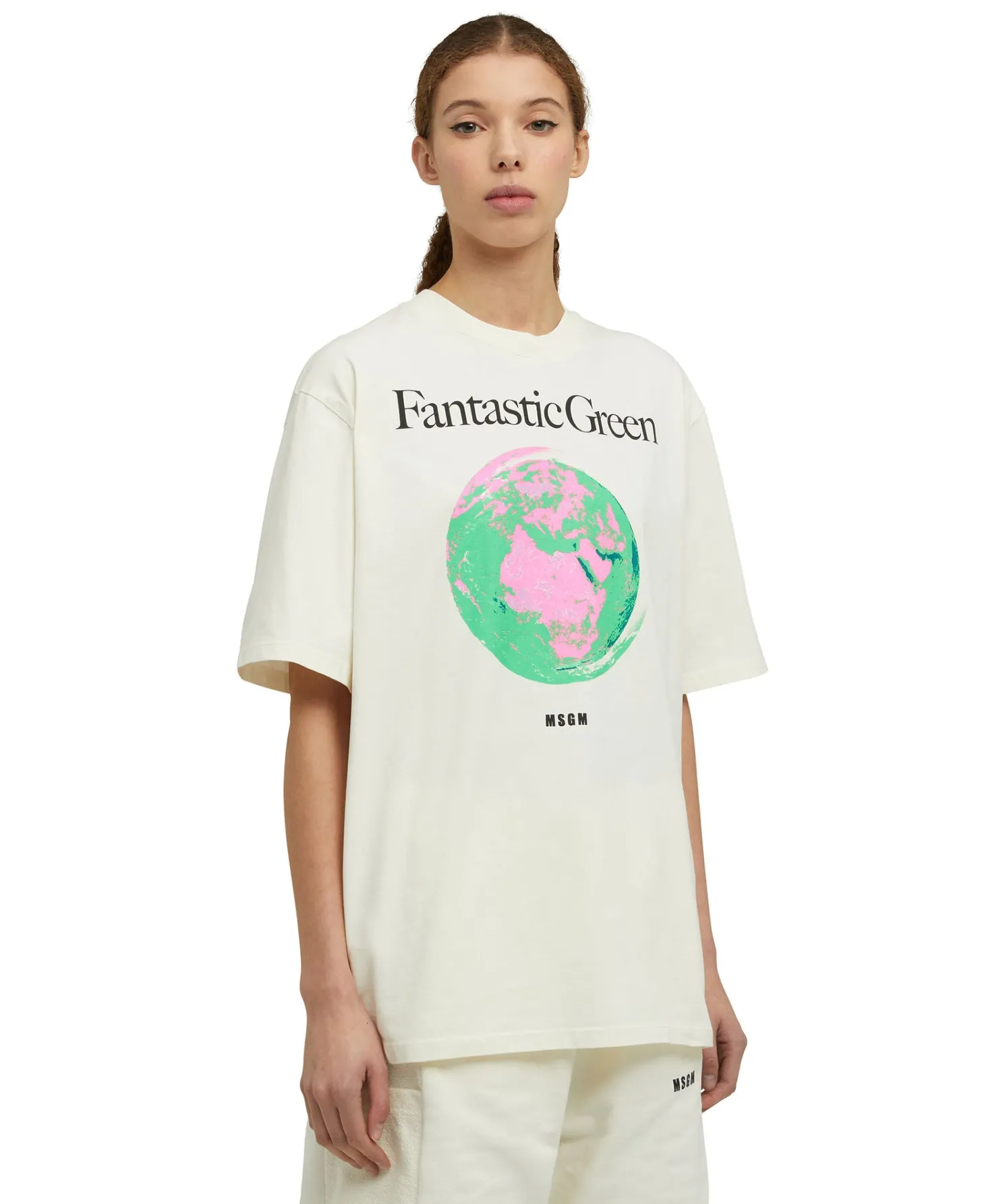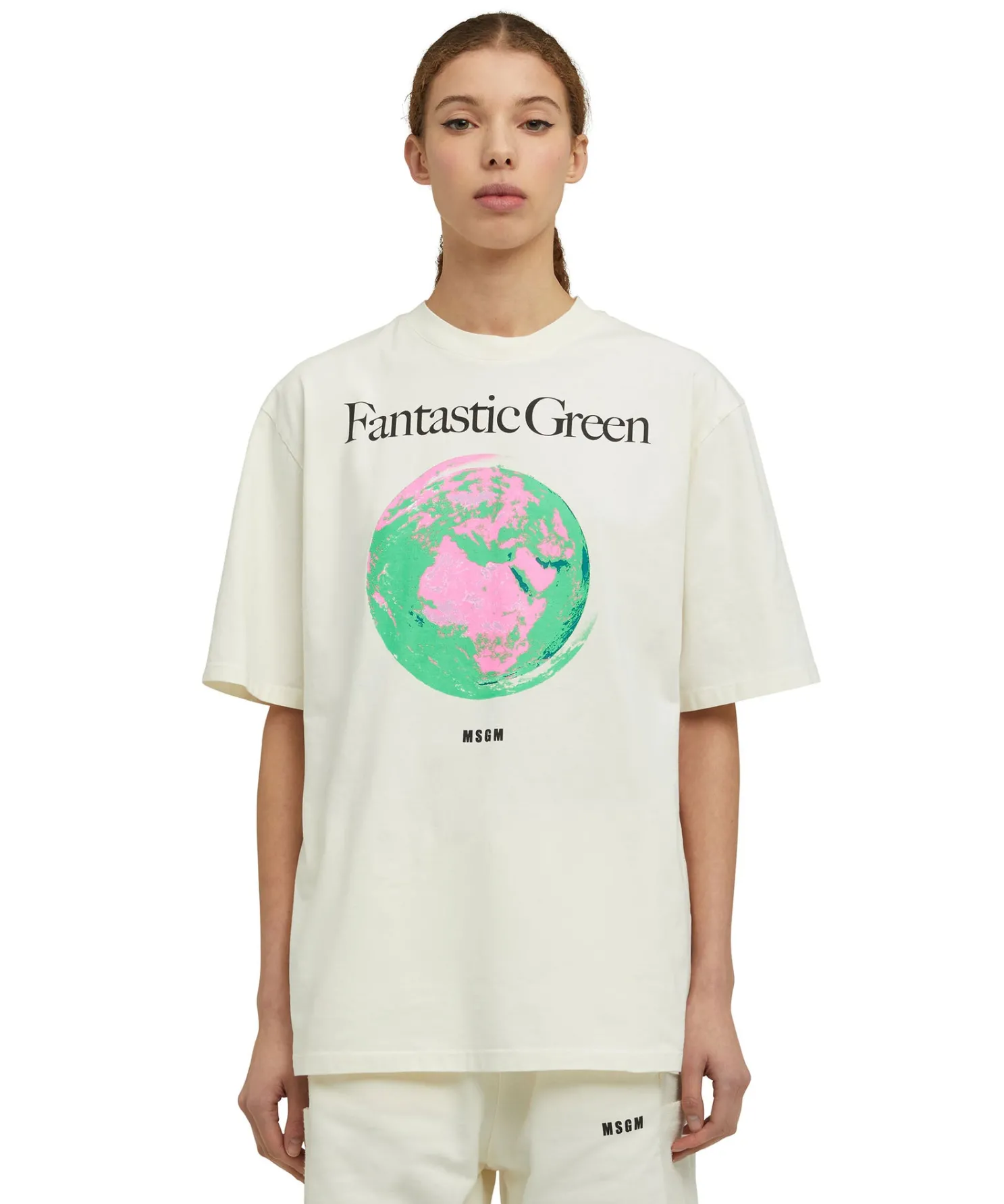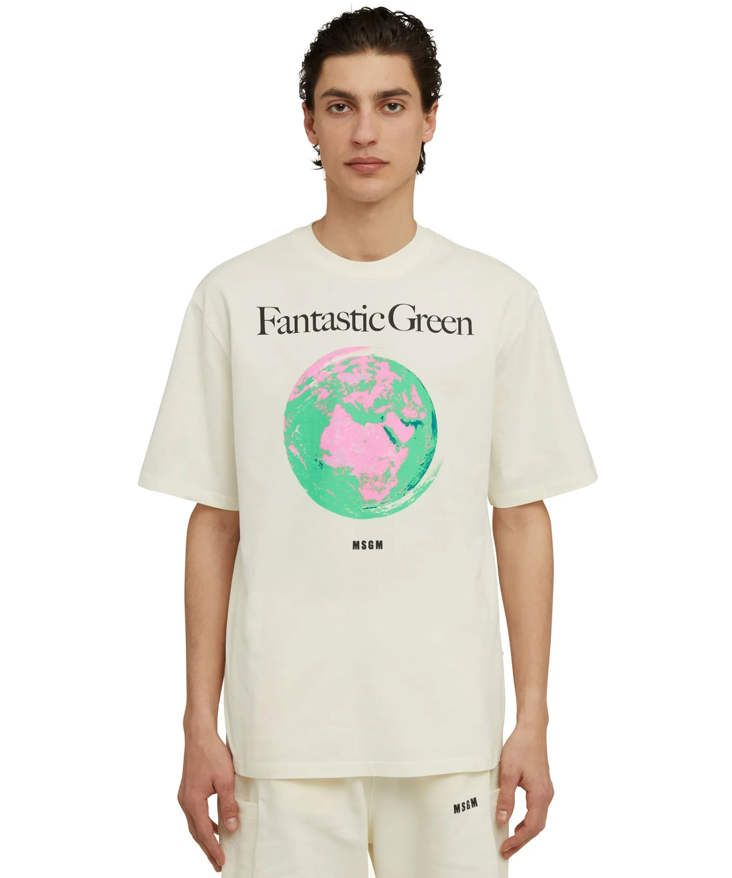 MSGM T-Shirt Girocollo In Cotone Organico Della Capsule Fantastic Green Cream Sale