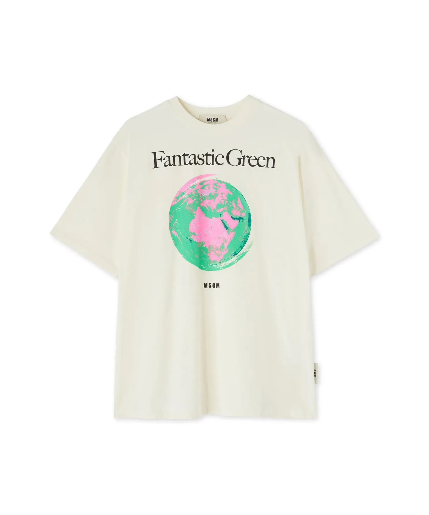 T-Shirt In Cotone Organico Tinta Unita Della Capsule Msgm Fantastic Green E Un Capo Interamente Sostenibile. La T-Shirt E Contraddistinta Da Design Girocollo E Maniche Corte. Sul Fondo A Tinta Unita Si Sviluppa La Stampa Msgm Fantastic Green In Contrasto. Fit Regolare.